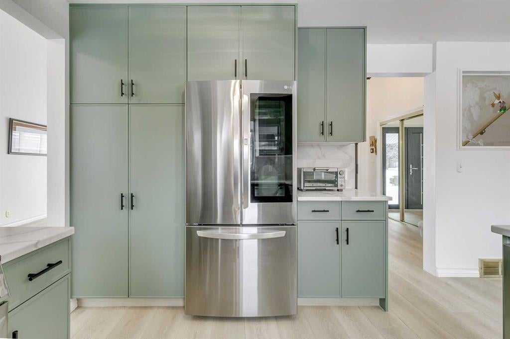 Welcome to life in Lake Bonavista — where mature trees, timeless charm, and year-round lake access come together in one of Calgary’s most sought-after communities. Tucked away on a quiet street in the prestigious estates area, this beautifully refreshed two-storey home offers the perfect blend of space, style, and lifestyle. From the moment you step inside, soaring vaulted ceilings and an abundance of natural light create an inviting, airy feel. The main and upper levels have been thoughtfully updated with luxury vinyl flooring, fresh white paint, and modern lighting, giving the entire home a bright, cohesive look. At the heart of the home is the fully renovated kitchen, designed for both everyday living and effortless entertaining. Featuring quartz countertops, new cabinetry and hardware, a built-in pantry with pull-out drawers, and updated appliances, sink, and faucet — it’s as functional as it is beautiful. A sunny breakfast nook overlooks the backyard, while the formal dining room is ready to host holidays and gatherings with ease. The main floor offers exceptional versatility with two distinct living spaces — a formal front living room and a cozy sunken family room centered around a wood-burning fireplace. A main-floor bedroom provides the perfect option for guests or a home office, complemented by an updated powder room. Upstairs, you’ll find three generously sized bedrooms, including two with walk-in closets and built-in organizers. The upper level is complete with a refreshed five-piece main bathroom and an updated three-piece ensuite. The newly carpeted lower level expands your living space with a large recreation room, wet bar, hobby room, full bathroom, and plenty of storage — ideal for growing families or entertaining. Outside, the home continues to impress. The exterior and garage door have been professionally repainted, most windows upgraded to durable fiberglass with Hunter Douglas blinds, and LeafFilter gutter protection adds long-term peace of mind. The fenced, level backyard is both spacious and low-maintenance — perfect for summer BBQs, kids, pets — and includes valuable RV parking, a rare and desirable feature in this community. Additional highlights include a double attached garage, a statement designer front door, and a brand-new washer and dryer conveniently located on the main floor. Set on a generous lot and just steps from schools, playgrounds, and green space — plus exclusive lake access — this is more than just a home, it’s a lifestyle. Skate on the lake in the winter, spend summers by the water, and experience the kind of community people rarely leave. Book a showing today!
